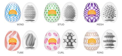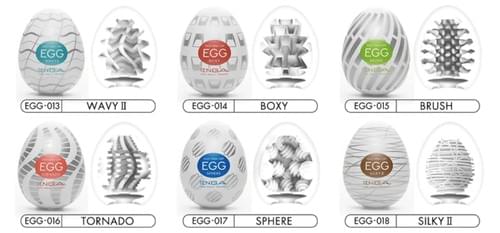 TENGA EGGคือซีรีส์ของเล่นทางเพศแบบใช้ครั้งเดียวทิ้งที่ยืดได้มาก ซึ่งเป็นหนึ่งในสินค้ายอดนิยมของ TENGA ทั่วโลก สามารถซื้อแยกหรือซื้อเป็น"ชุดวาไรตี้"ซึ่งมีไข่ 6 ฟองจากซีรีส์เดียวกัน